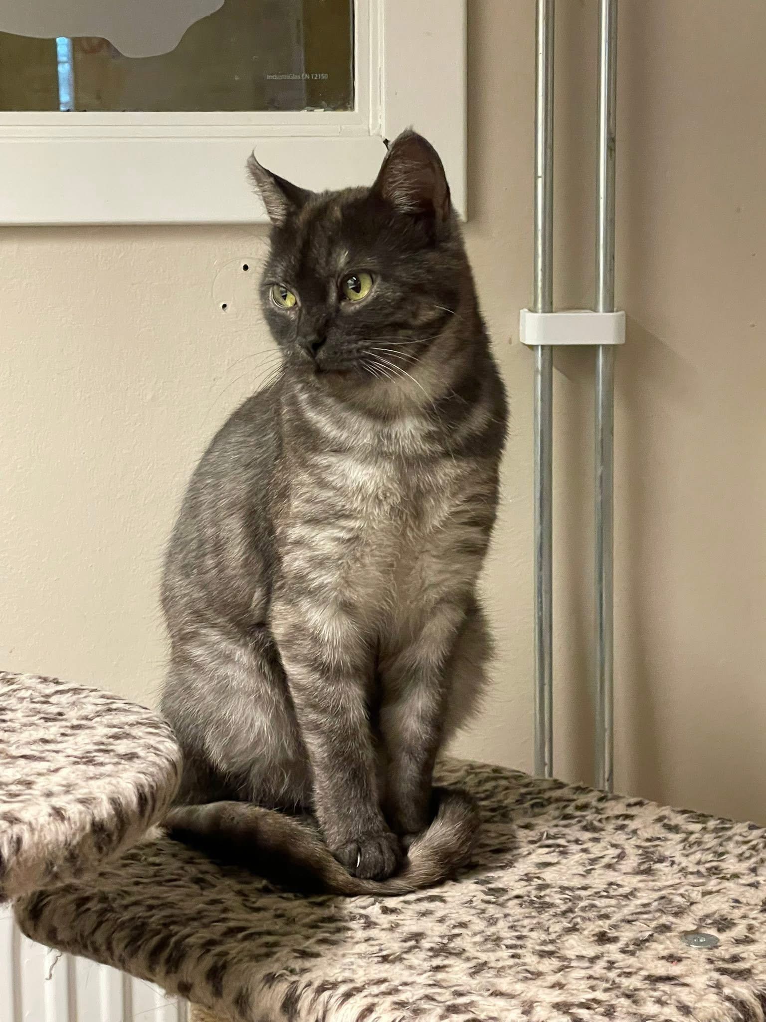 Kaffe har vandrat omkring som hemlös och är därför en skygg kisse som behöver ett lugnt och tryggt hem.