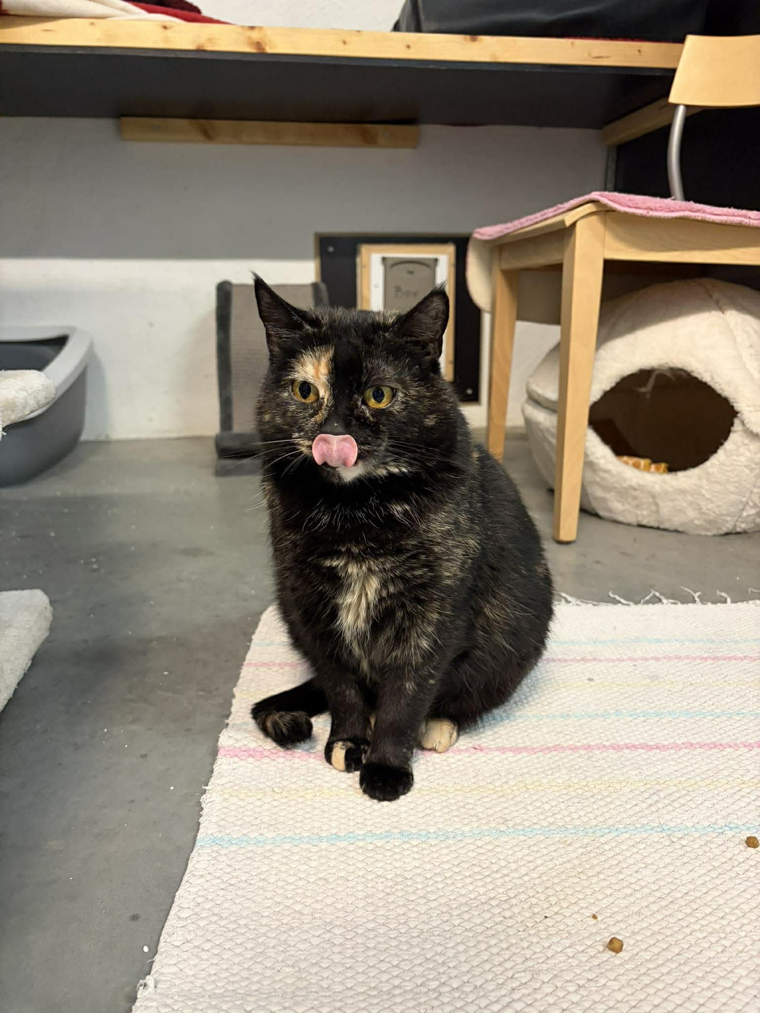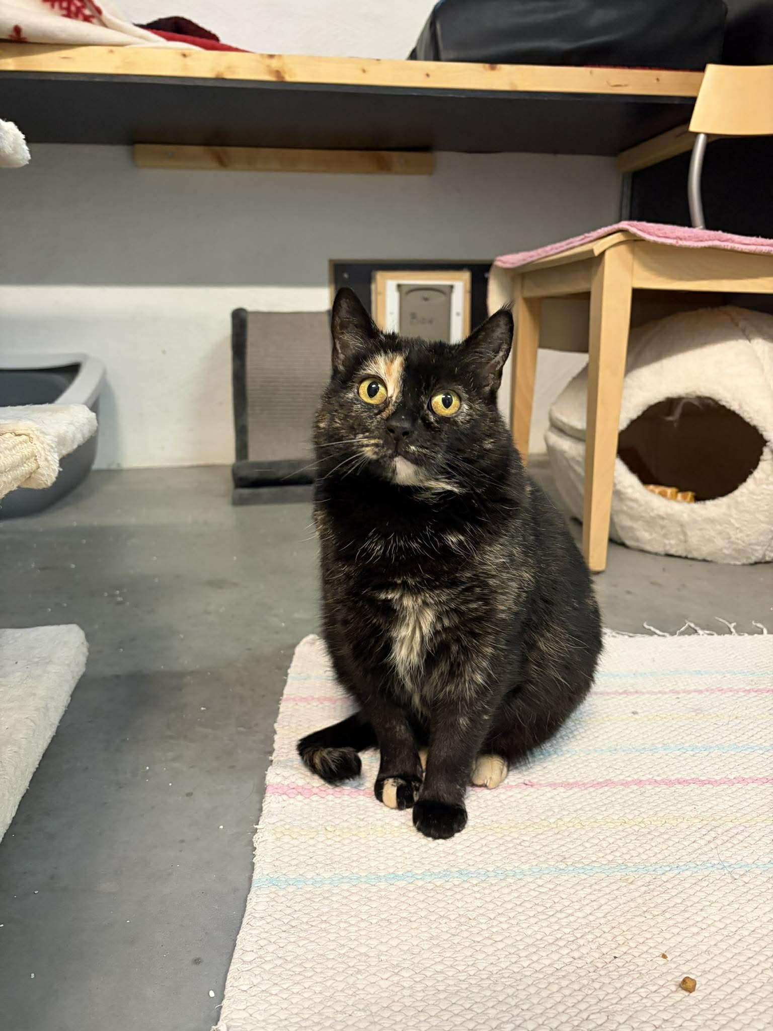 Beskrivning: Babben kom till oss när hennes äldre ägare inte längre hade möjlighet att sköta henne. En familj tog tillfälligt hand om Babben och kontaktade sedan oss. Babben är född 2024.