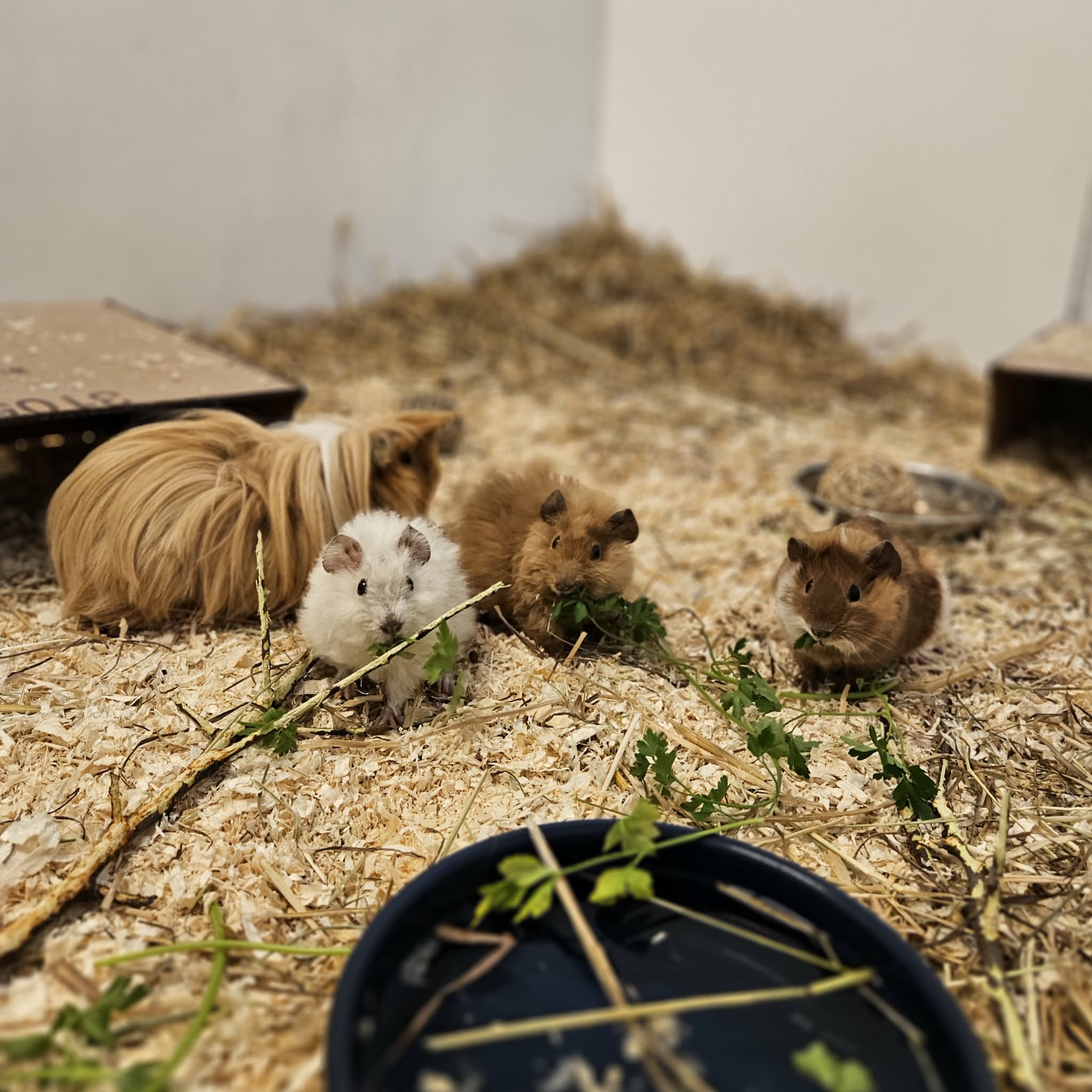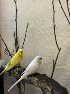 Ett tag senare kom Sören och Sara in i gruppen. När familjen skaffade hund trivdes inte fåglarna längre. Nu trivs de bra med sina nya vänner. Sören och Sara är födda 2022.