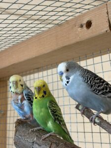 Vi säljer bara fåglar till att vara friflygande i voljärer eller rum, inte för att hållas i bur. De kan placeras i grupp eller var för sig, så länge det nya hemmet erbjuder sällskap av andra undulater.