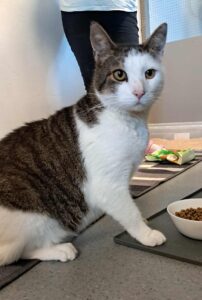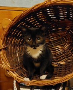 Missan är en svart och vit hona som är blyg men som har börjat våga komma fram och leka med jourmatte.