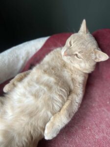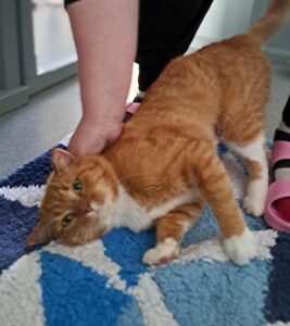 Han är under läkning och smärtlindring nu. Men ändå bara älskar han att gosa och få en massa uppmärksamhet.