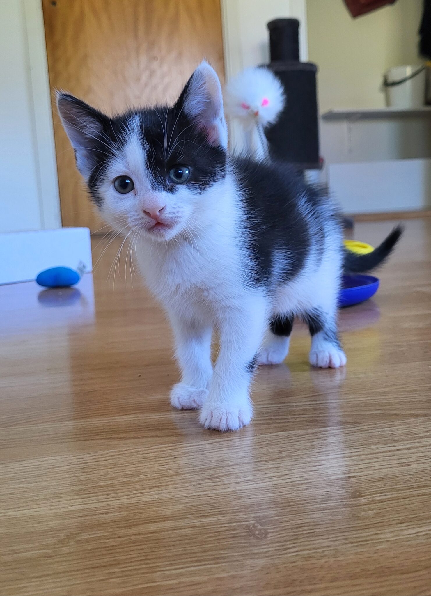 Hinner med mys i mellan åt, men annars är han som alla andra kattungar, leka, sova äta o så börjar det om.