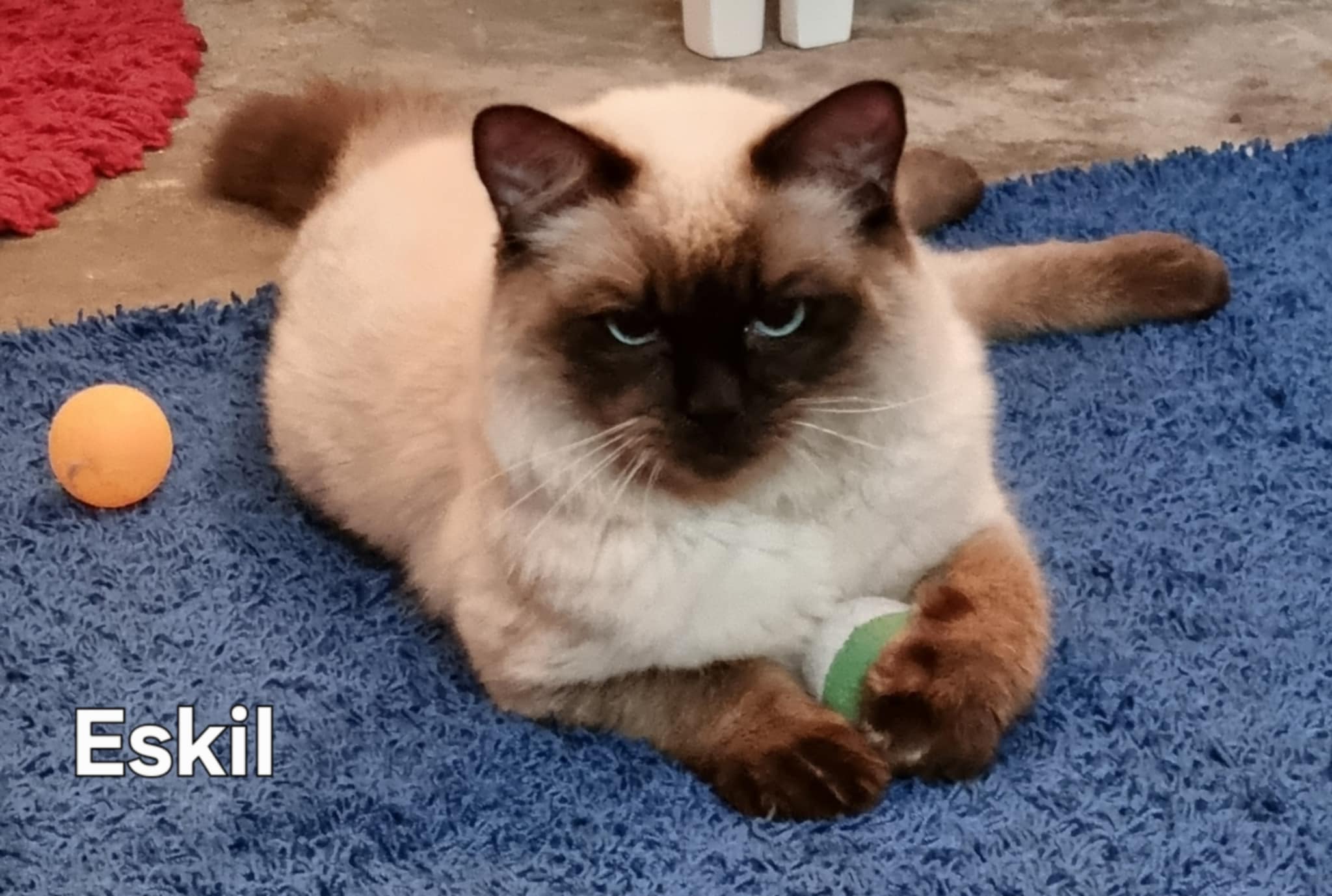 Eskil är en gosig kille som gilla att mysa och leka.